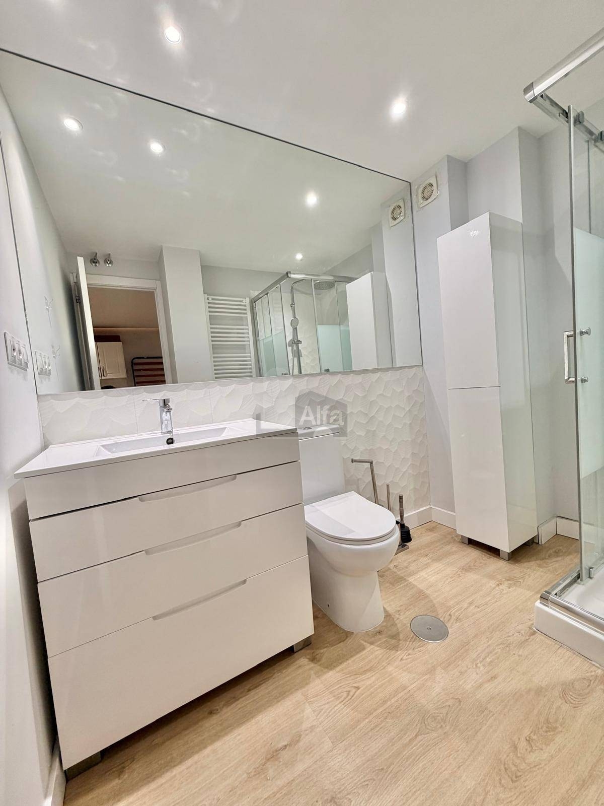 - Baño completo reformado, con plato de ducha y mampara de vidrio.